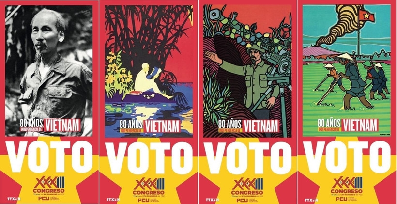 Các phiếu bầu được sử dụng tại Đại hội Đảng Cộng sản Uruguay trong đó có 3 phiếu in hình áp phích về Bác Hồ và 1 phiếu mang hình áp phích về nhân dân Việt Nam tham gia sản xuất trong giai đoạn kháng chiến chống giặc ngoại xâm, mang dòng chữ “80 năm Quốc khánh Việt Nam” và “Đại hội Đảng Cộng sản Uruguay (PCU) lần thứ 33.”