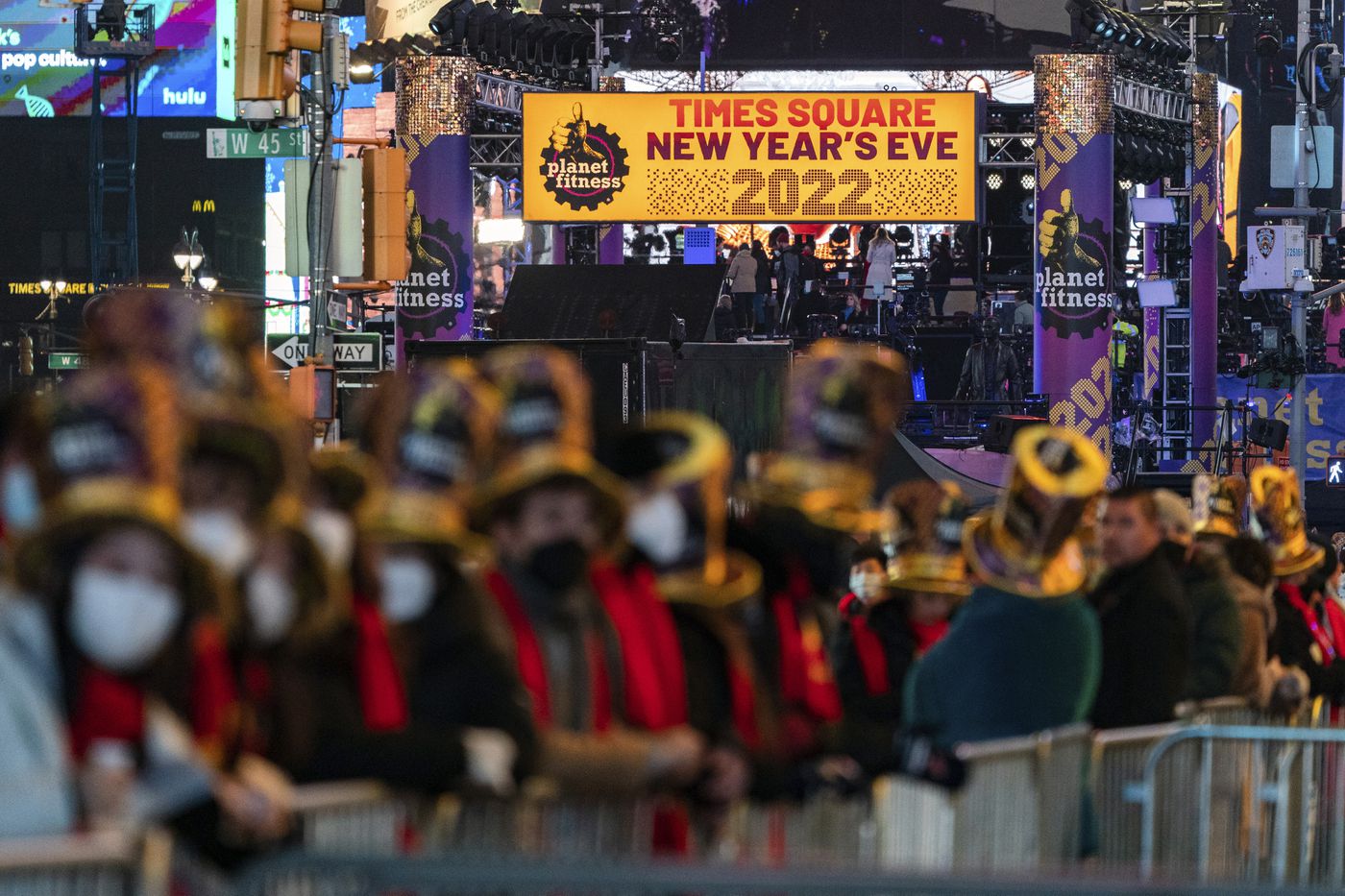 Người dân tập trung tại quảng trường Thời đại trong tối 31/12/2021 để đón chào Năm mới. Ảnh: AP