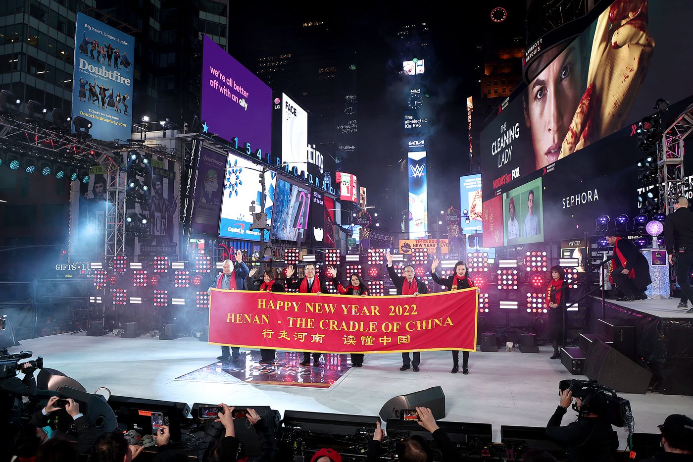 Hiệp hội hữu nghị Mỹ-Trung đóng góp tiết mục biểu diễn nghệ thuật trên Quảng trường Thời đại, với đoàn nghệ sĩ đến từ tỉnh Hải Nam, Trung Quốc. Ảnh: Getty Image​s