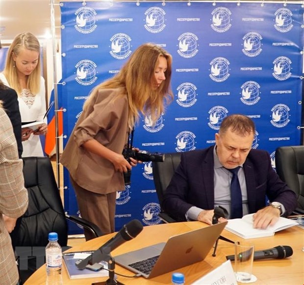 Hội thảo diễn ra nhân dịp ra mắt cuốn sách “Việt Nam cất cánh” của tác giả người Nga Grigory Trofimchuk, theo cả hình thức trực tiếp tại trụ sở của Rossotrudnichestvo ở thủ đô Moskva và trực tuyến qua các đầu cầu ở các nước thành viên Liên minh Kinh tế Á-Âu (EAEU).