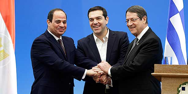 Tổng thống Ai Cập Abdel Fattah al-Sisi, Thủ tướng Hy Lạp Alexis Tsipras và Tổng thống Cyprus (hay Cộng hòa Síp) Nikos Anastasiades đã có cuộc gặp tại Athens để thảo luận các phương án tận dụng lợi thế của kho dự trữ khí đốt, nhất là sau khi Ai Cập phát hiện trữ lượng khí đốt lớn chưa từng có trong lịch sử ở Địa Trung Hải hồi tháng 8 năm nay.