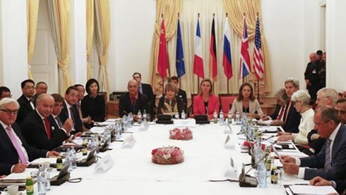 Quan chức các nước tham gia vào đàm phán hạt nhân Iran tại Palais Coburg, Vienna, Áo (Ảnh: Reuters)