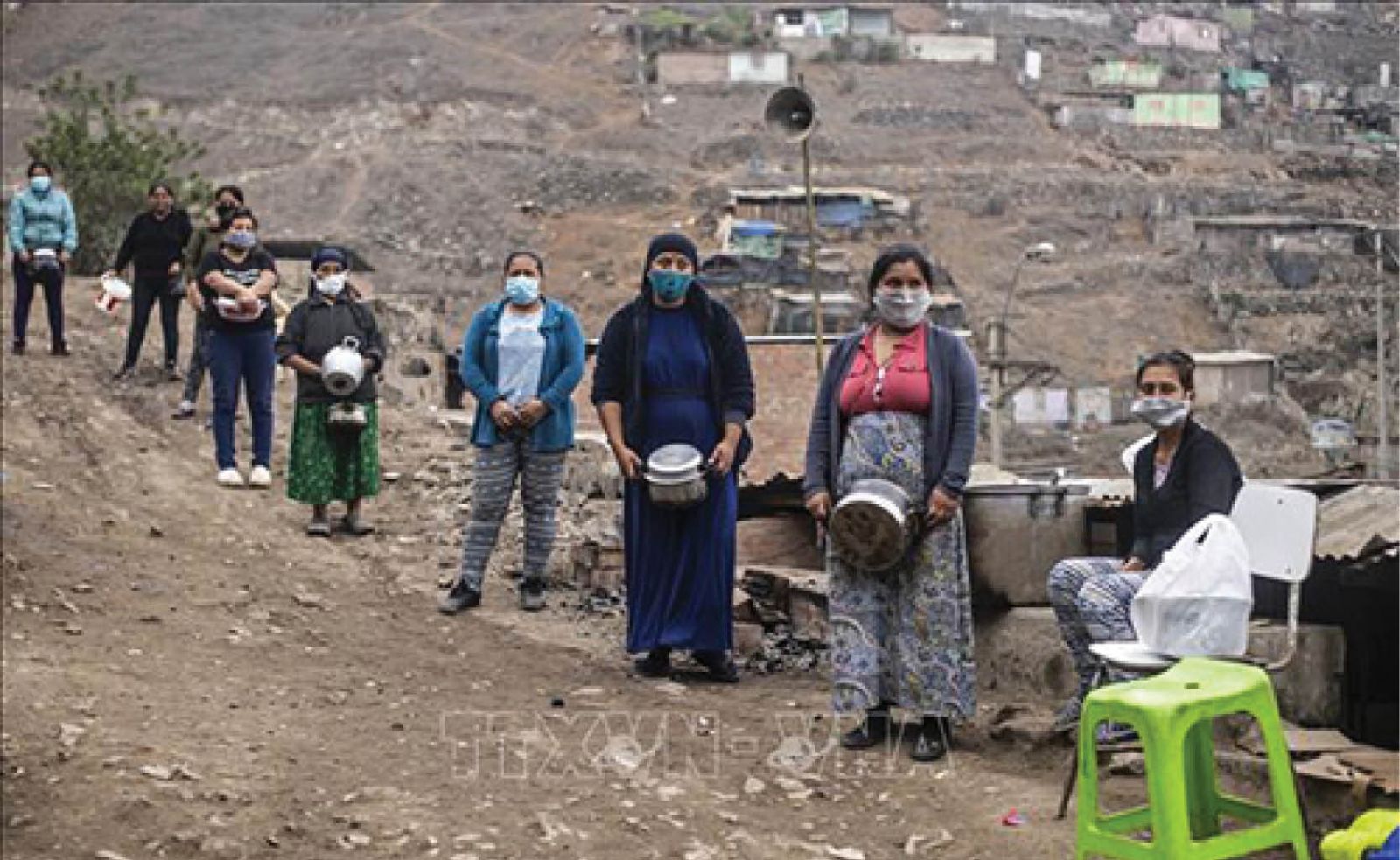 Người dân xếp hàng chờ nhận lương thực cứu trợ đại dịch COVID-19 ở Peru. Ảnh minh hoạ: TTXVN