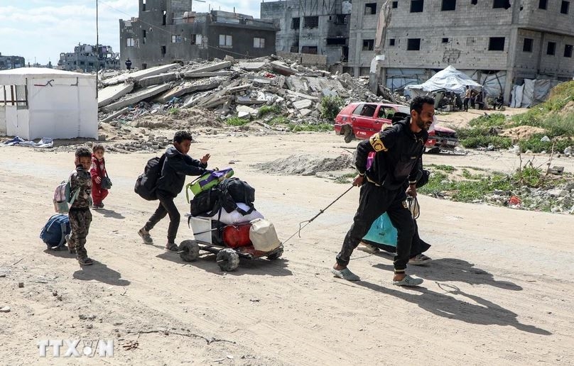 | Người dân sơ tán tránh xung đột tại thành phố Gaza ngày 19/3/2025. (Ảnh: THX/TTXVN) |