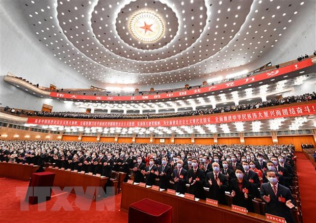 Các đại biểu đại diện cho hơn 96 triệu đảng viên và hơn 4,9 triệu tổ chức đảng cấp cơ sở tham dự Đại hội Đại biểu toàn quốc lần thứ XX Đảng Cộng sản Trung Quốc ở thủ đô Bắc Kinh, ngày 16/10/2022. (Ảnh: THX/TTXVN)
