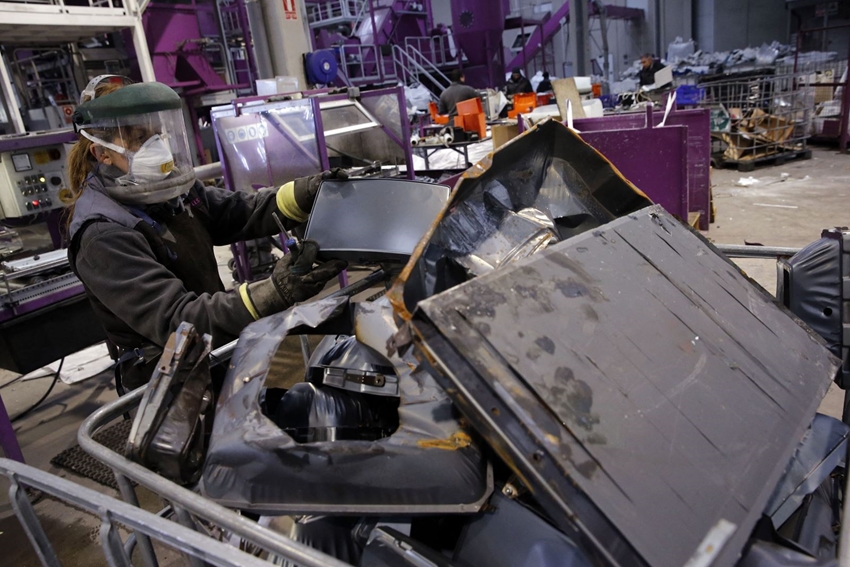 | Công nhân xử lý rác thải điện tử tại một nhà máy ở Osorno, miền bắc Tây Ban Nha. Ảnh: AFP/ TTXVN |