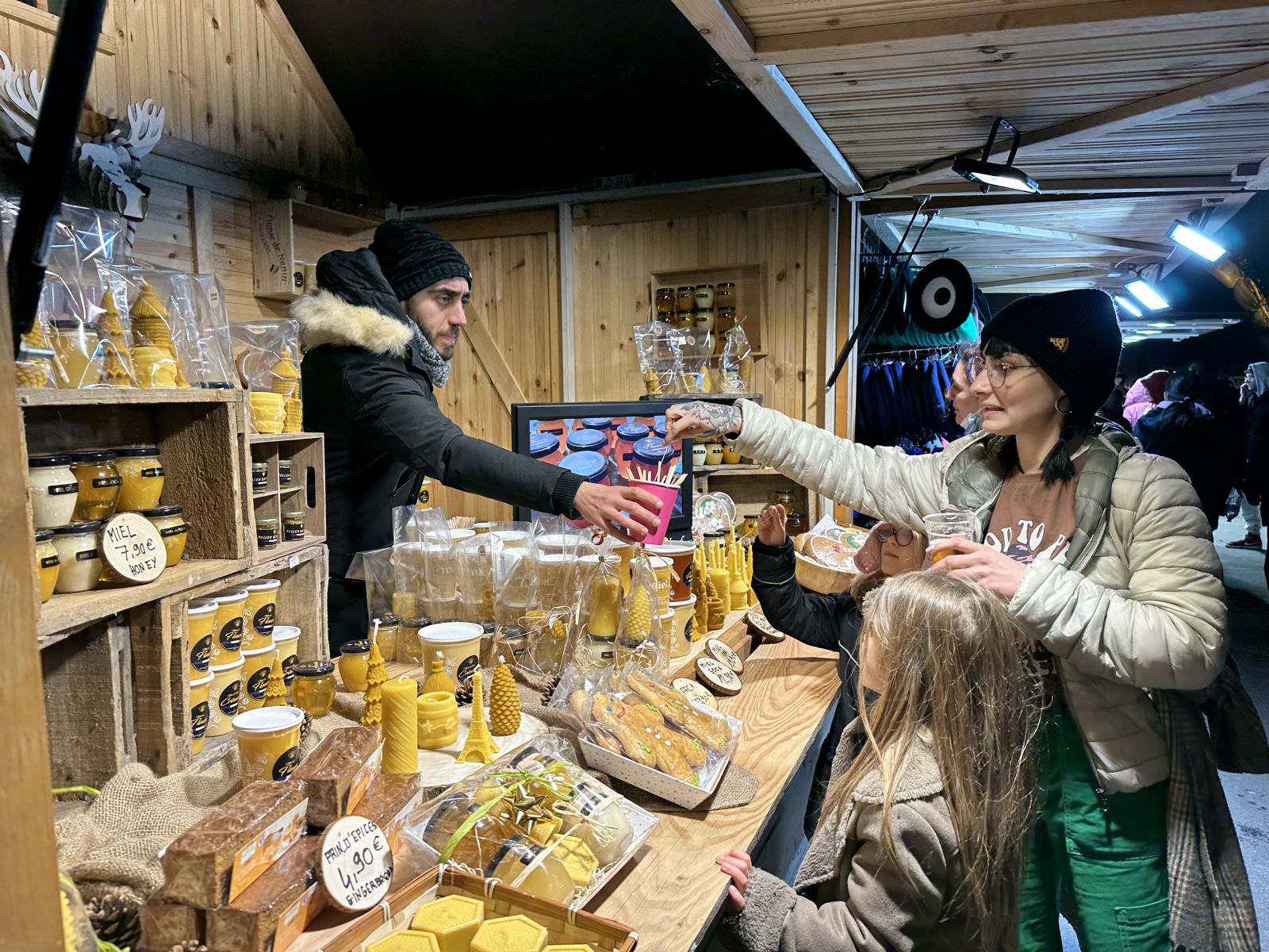 Đèn LED được sử dụng tại chợ Giáng sinh để tiết kiệm điện.