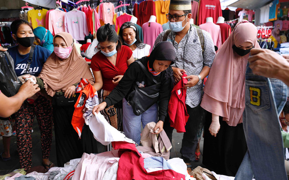 Người dân lựa chọn quần áo mới tại chợ Tanah Abang ở thủ đô Jakarta, Indonesia, ngày 11-5 cho lễ hội Eid al-Fitr đánh dấu kết thúc tháng chay Ramadan của người Hồi giáo - Ảnh: REUTERS