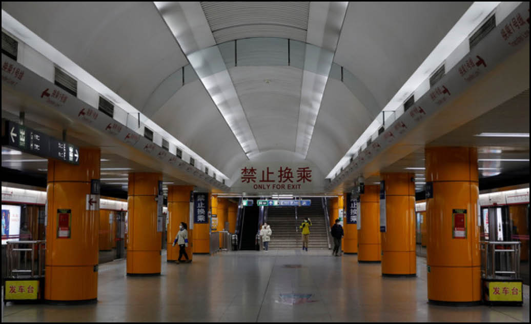 Ga tàu điện ngầm ở Bắc Kinh vắng vẻ trong ngày đầu tuần 10/2. Ảnh: Reuters/Tuoitre