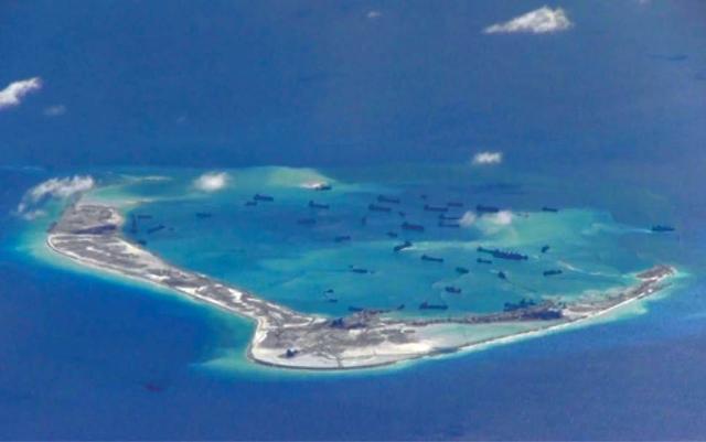 | Các tàu hút bùn của Trung Quốc hoạt động quanh đá Vành Khăn, thuộc quần đảo Trường Sa của Việt Nam. Ảnh: AFP |