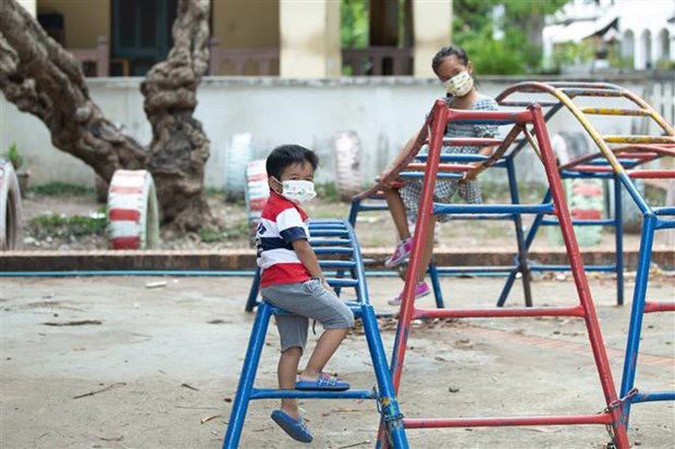 Trẻ em đeo khẩu trang phòng dịch COVID-19 tại Luang Prabang (Lào), ngày 1/6/2021. Ảnh:THX/TTXVN