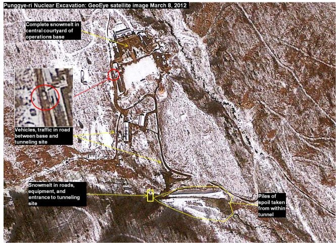 Ảnh chụp từ vệ tinh khu vực thử hạt nhân Punggye-ri của Triều Tiên. Ảnh: Bloomberg