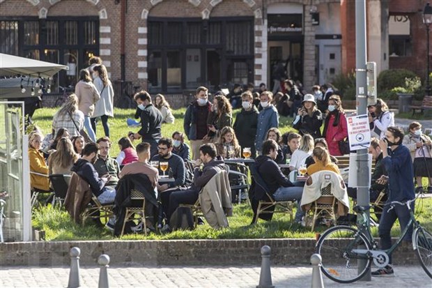 Người dân Pháp gặp gỡ nhau tại một quán bar ngoài trời ở thành phố miền Bắc Lille. (Ảnh: THX/TTXVN)