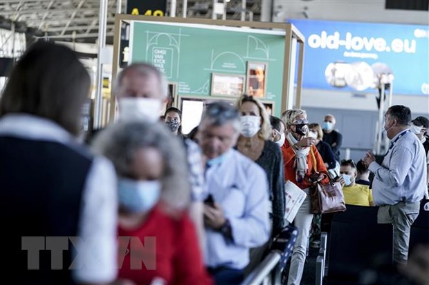 Hành khách xếp hàng chờ làm thủ tục tại sân bay Brussels ở thành phố Zaventem, gần thủ đô Brussels, Bỉ. Ảnh minh họa: AFP/TTXVN
