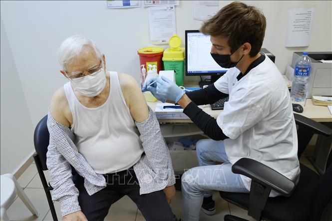 Tiêm mũi 4 vaccine phòng COVID-19 cho người dân tại thành phố Tel Aviv, Israel. Ảnh: AFP/TTXVN
