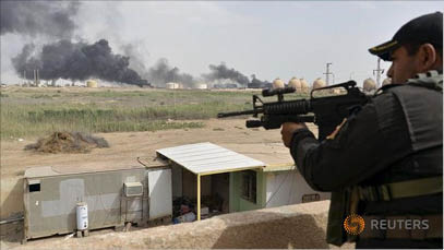Nhân viên an ninh đang canh giữ 1 mỏ dầu ở Iraq. Ảnh: Reuters