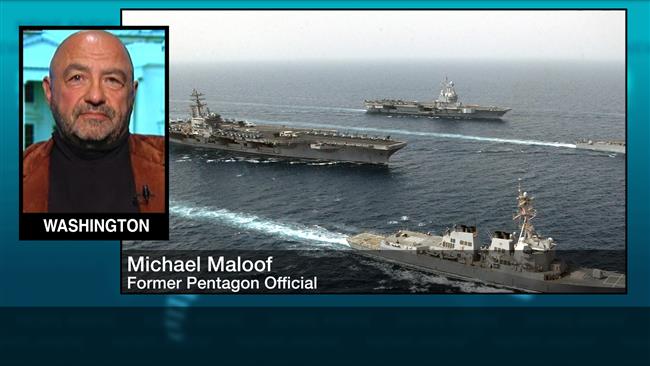 Cựu chuyên gia phân tích của Bộ Quốc phòng Mỹ Michael Maloof nói về quyết định triển khai siêu chiến hạm tới căn cứ hải quân Yokosuka của Lầu Năm Góc. Ảnh: PressTV