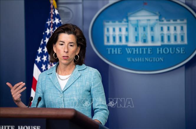 Bộ trưởng Thương mại Mỹ Gina Raimondo phát biểu tại một cuộc họp báo. Ảnh minh họa: AFP/TTXVN