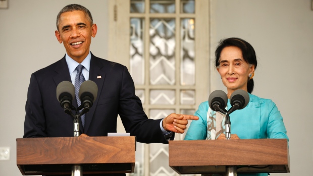 Bà Suu Kyi trong một cuộc gặp với Tổng thống Mỹ Obama năm 2014. Ảnh: CBC.