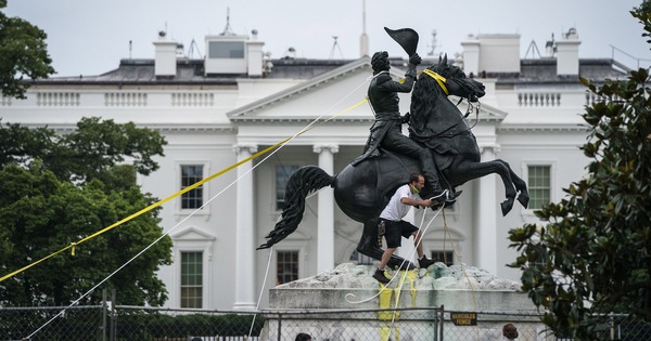Những người biểu tình kéo đổ tượng đài tổng thống Andrew Jackson gần Nhà Trắng. Ảnh minh họa: Getty Images/ Tuổi trẻ