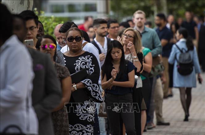 Dòng người xin việc làm bên ngoài một công ty ở bang Virginia, Mỹ. Ảnh minh hoạ: AFP/TTXVN