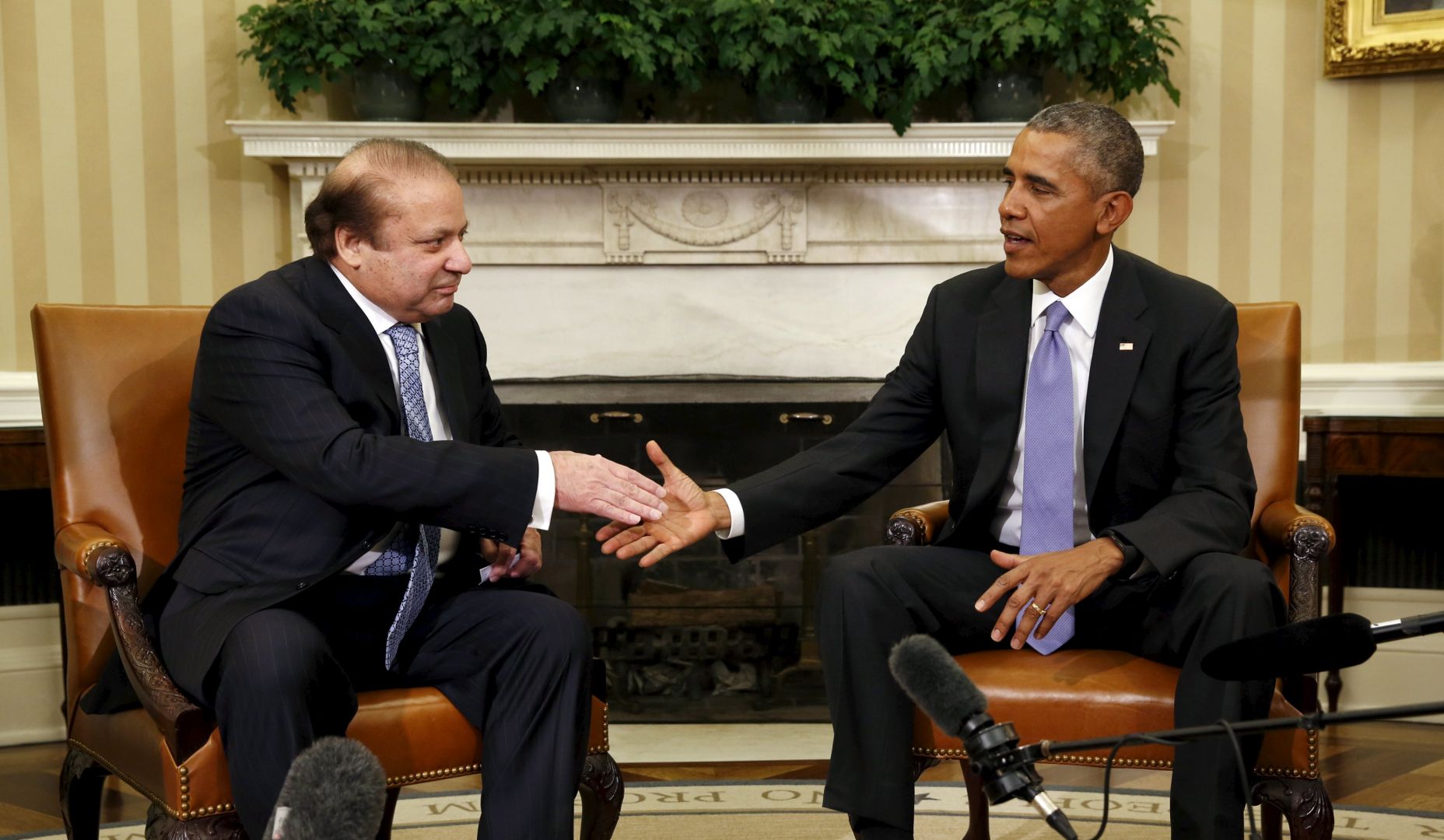 Tổng thống Mỹ Barack Obama và Thủ tướng Pakistan Nawaz Sharif tại Phòng Bầu dục, Nhà Trắng ngày 22/10. Ảnh: Reuters