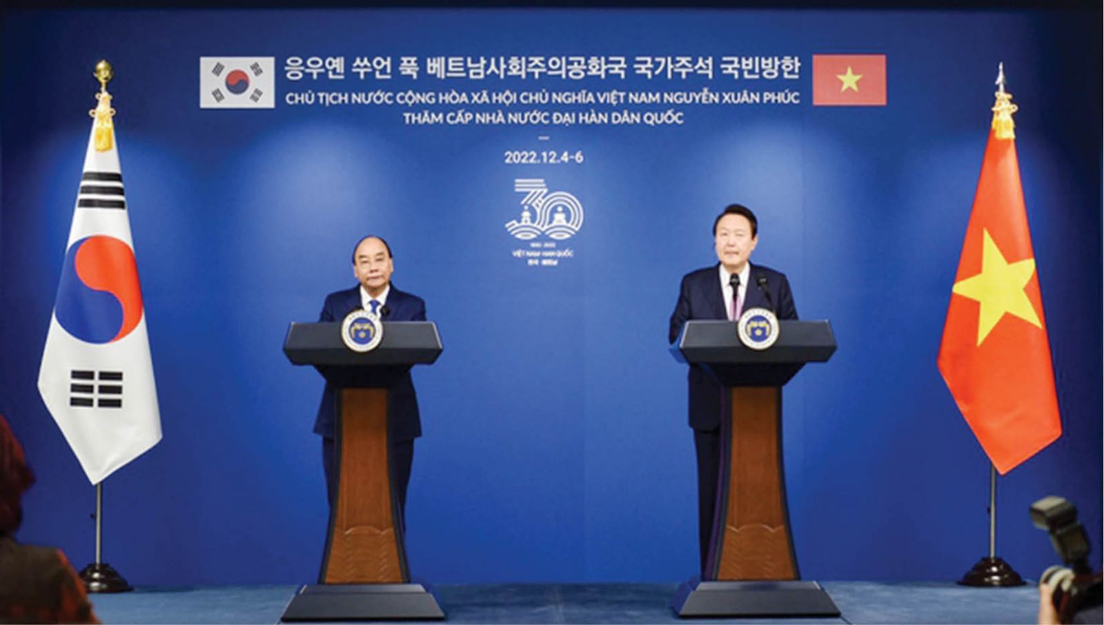 Sau cuộc họp hội nghị thượng đỉnh với Chủ tịch nước Nguyễn Xuân Phúc, tại cuộc họp báo chung, Tổng thống Hàn Quốc Yoon Suk-yeol chia sẻ: “Việt Nam là đối tác cốt lõi trong chiến lược Ấn Độ Dương - Thái Bình Dương của Hàn Quốc và Sáng kiến Đoàn kết Hàn Quốc - ASEAN”.