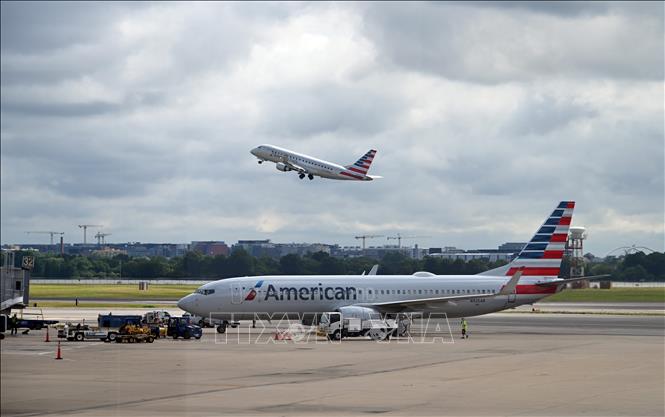 Máy bay của Hãng hàng không American Airlines tại sân bay quốc gia Ronald Reagan Washington ở Arlington, Virginia, Mỹ. Ảnh: AFP/TTXVN