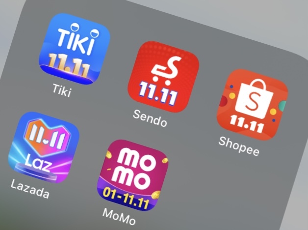 Hàng loạt ứng dụng mua sắm cùng quảng bá sự kiện ngày 11/11. Ảnh chụp màn hình