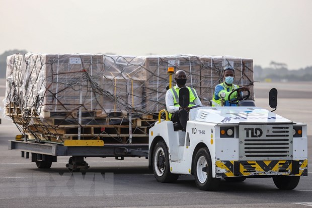Vaccine ngừa COVID-19 được chuyển đến một quốc gia ở Tây Phi thông qua cơ chế COVAX. Ảnh minh họa: AFP/TTXVN