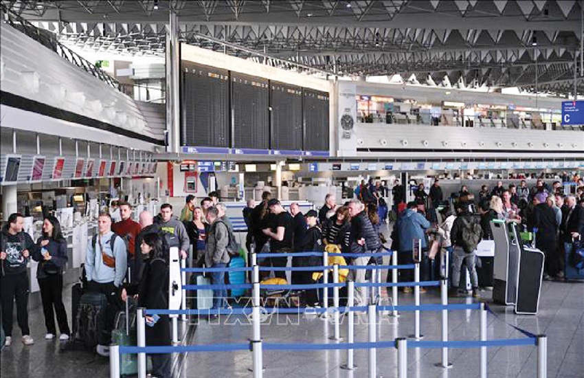 | Hành khách xếp hàng chờ làm thủ tục tại sân bay Frankfurt, Đức. Ảnh minh họa: AFP/TTXVN |
