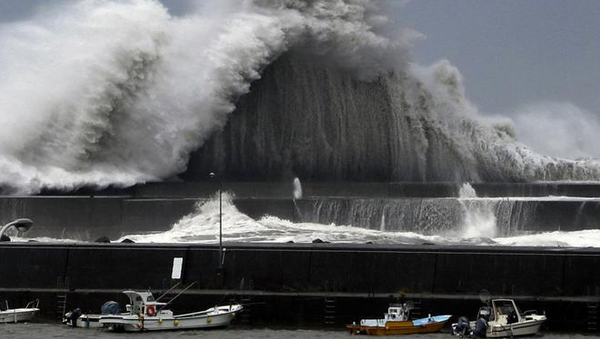 Sóng lớn xô vào cảng biển trong một cơn bão mạnh ở Nhật Bản. Ảnh minh họa: AP/ TTXVN
