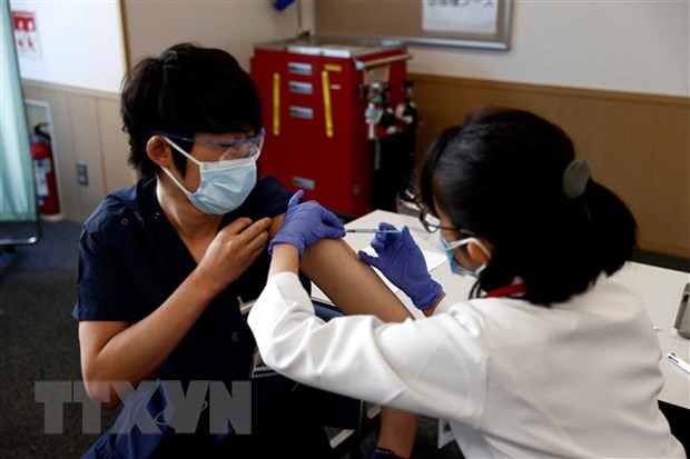 Chiến dịch tiêm vaccine ngừa COVID-19 được triển khai tại thủ đô Tokyo, Nhật Bản. Ảnh minh họa: AFP/TTXVN