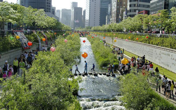 Ở thủ đô Seoul của Hàn Quốc, chính quyền TP đã kiên trì thuyết phục người dân để khôi phục suối Cheonggyecheon, một con suối bị lấp để xây đường cao tốc trên cao trong nhiều thập kỷ.