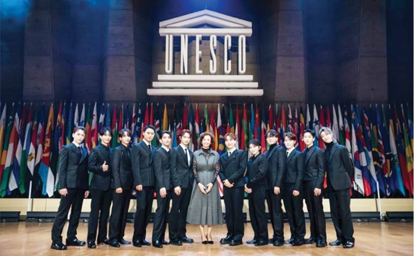| Nhóm nhạc Hàn Quốc Seventeen đã được bổ nhiệm làm Đại sứ thiện chí chính thức của UNESCO vào tháng 6/2024. Ảnh: Yonhap |