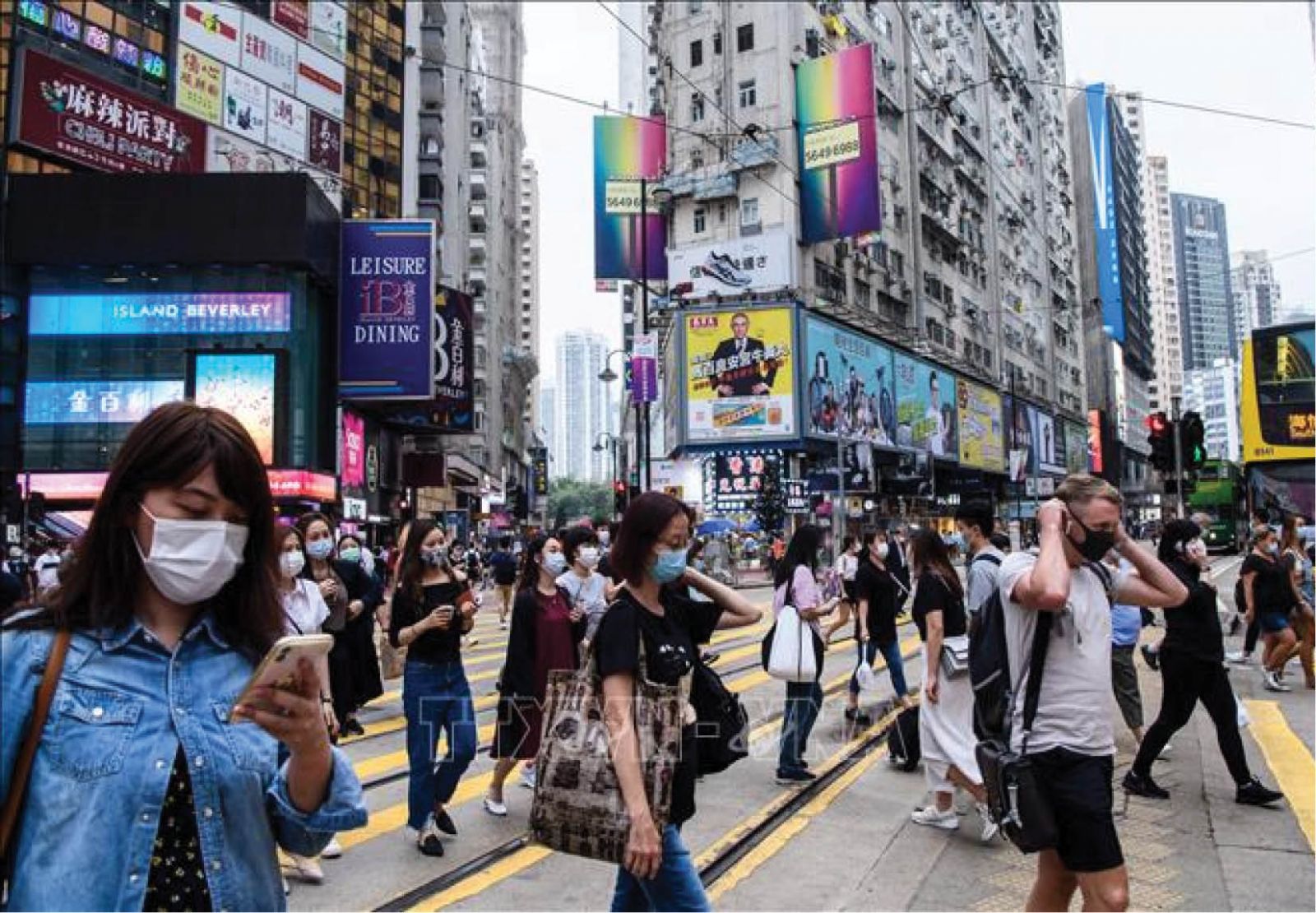 Người dân sống tại thành phố Hồng Kông (Trung Quốc) đeo khẩu trang để phòng tránh lây nhiễm dịch bệnh COVID-19. Ảnh minh họa: AFP/TTXVN