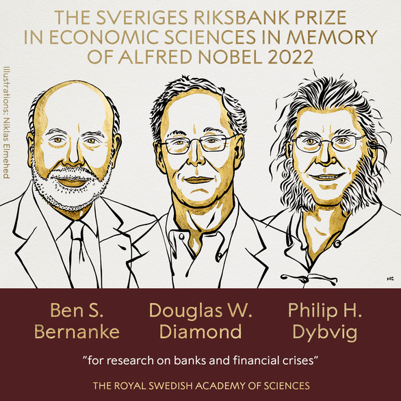 Ngày 10/10, giải Nobel Kinh tế 2022 đã được trao cho ba nhà kinh tế Ben S. Bernanke, Douglas W. Diamond và Philip H. Dybvig với "nghiên cứu về ngân hàng và khủng hoảng kinh tế".