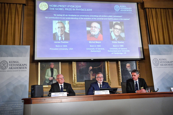 Buổi công bố giải Nobel vật lý 2019 tại Stockholm, Thụy Điển ngày 8/10. Ảnh: REUTERS