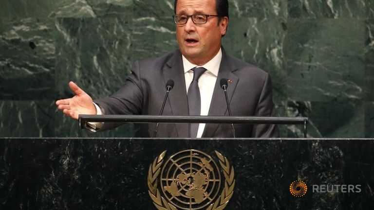 Tổng thống Pháp Francois Hollande trong phiên họp lần thứ 70 của Đại hội đồng LHQ tại New York (Mỹ). Ảnh: Reuters