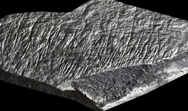 Mảnh đá được chạm khắc trên bề mặt. Ảnh: BBC