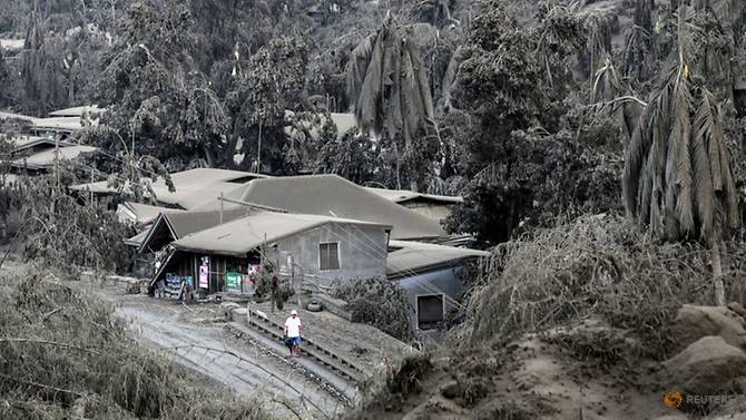 Tại thành phố Talisay, rất nhiều ngôi nhà, phương tiện phủ đầy khói bụi. Những con đường bị lấp đầy bởi tro núi lửa, cây cối bắt đầu chết do vướng bụi quá dày. Ảnh minh họa: CNA