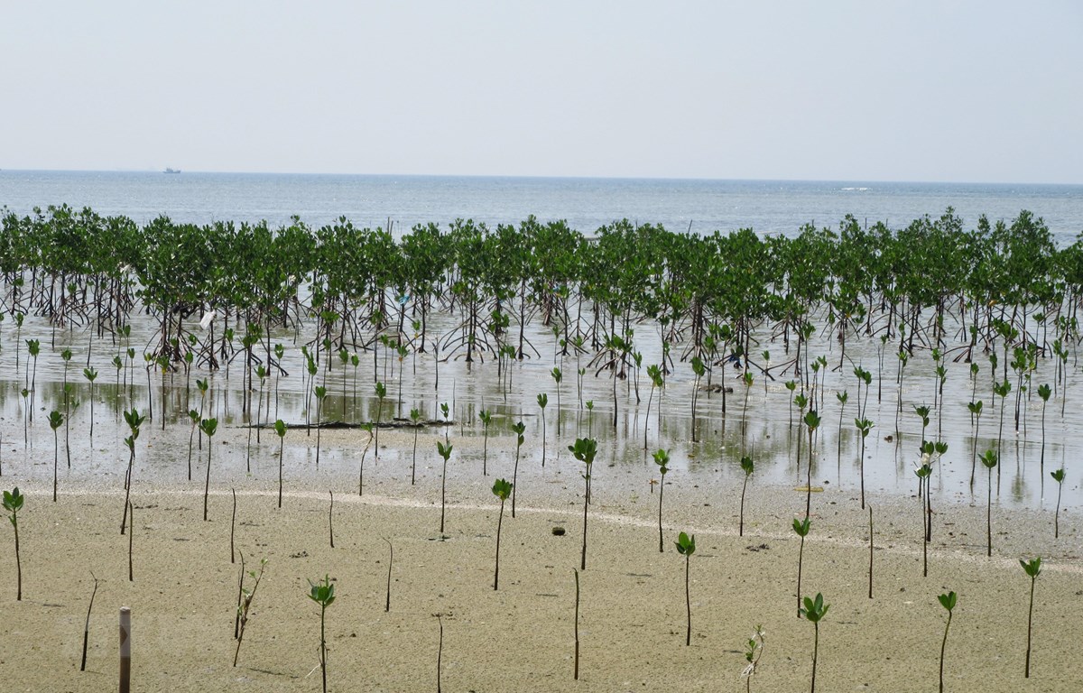 Trồng rừng ngập mặn phục hồi hệ sinh thái tại khu bảo tồn biển Vườn quốc gia Núi Chúa, huyện Ninh Hải, Ninh Thuận. (Ảnh: Nguyễn Thành/TTXVN)