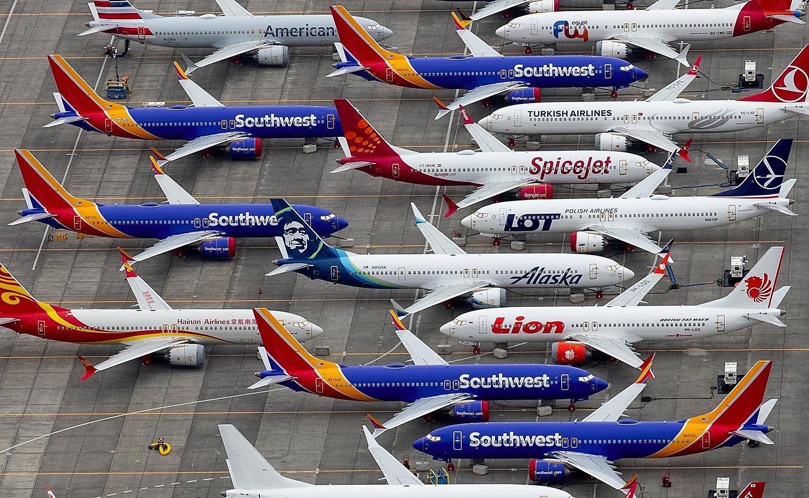 Hàng loạt máy bay Boeing 737 MAX đã bị cấm vận hành sau 2 vụ tai nạn nghiêm trọng năm 2018-2019. Ảnh: SFGATE