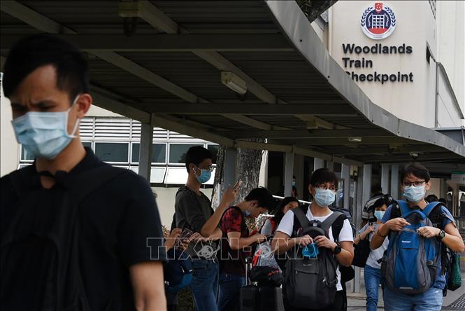Người dân Singapore đeo khẩu trang để phòng tránh sự lây nhiễm của dịch bệnh COVID-19. Ảnh minh hoạ: AFP/TTXVN