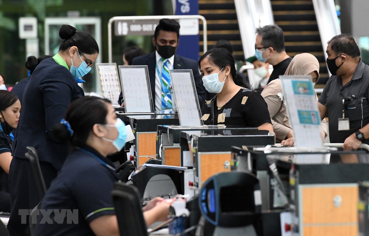 Hành khách làm thủ tục tại sân bay quốc tế Changi ở Singapore ngày 8/6/2020. (Ảnh: AFP/TTXVN)