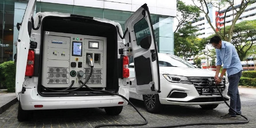 | Dịch vụ sạc di động dành cho xe điện tại Singapore. Ảnh minh họa: Straitstimes.com/TTXVN |