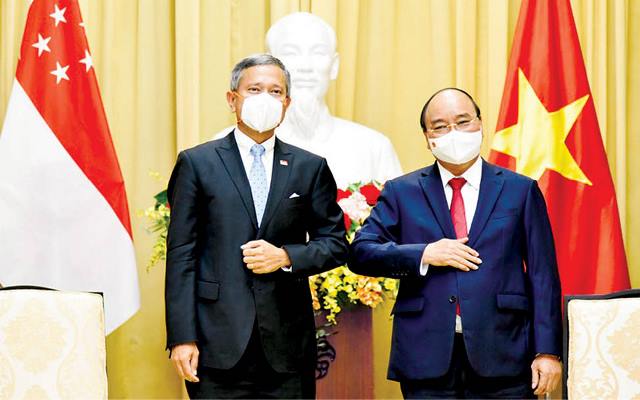 Chủ tịch nước Nguyễn Xuân Phúc và Bộ trưởng Ngoại giao Singapore Vivian Balakrishnan trong chuyến thăm Việt Nam của lãnh đạo Singapore. Ảnh minh họa: Bộ Ngoại Giao/Nhân dân Điện tử