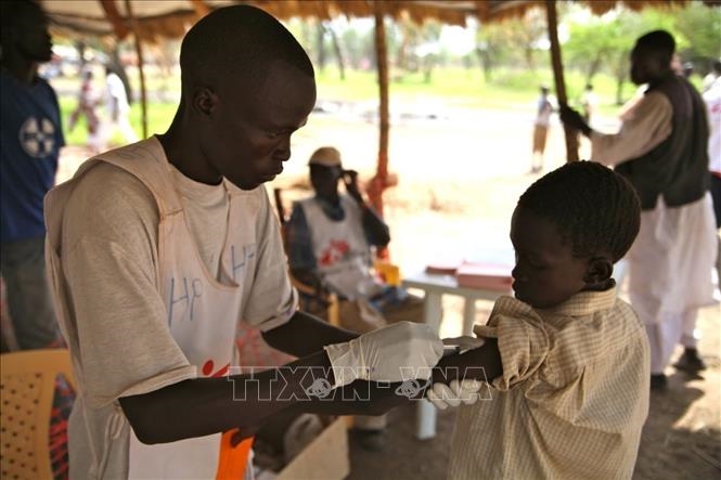 | Trẻ em được tiêm vaccine ngừa bệnh sởi ở Minkamman, Nam Sudan. Ảnh minh họa: AFP/TTXVN |