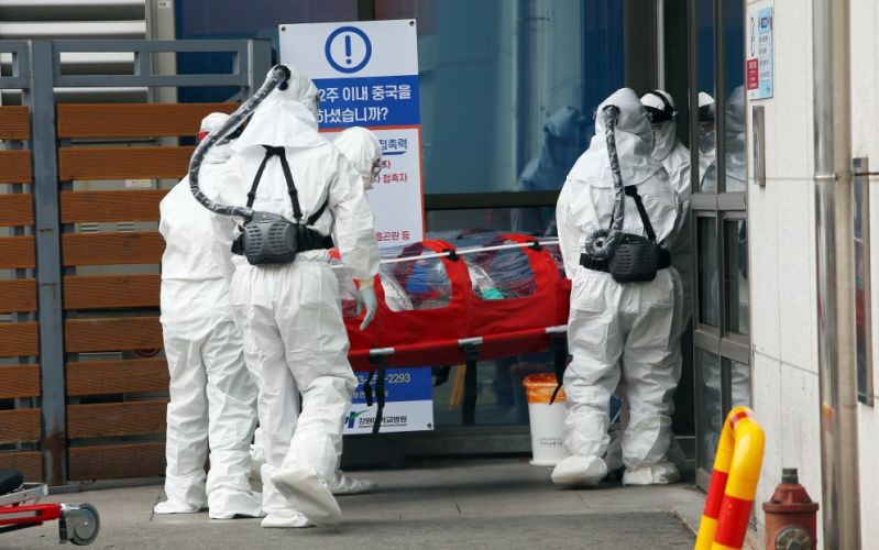 Các nhân viên y tế Hàn Quốc khẩn trương đối phó với dịch Covid-19 lan rộng. Ảnh: AP