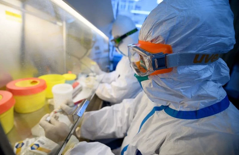 Các nhân viên y tế trong bộ đồ bảo hộ đang xét nghiệm các mẫu bệnh phẩm nhiễm covid-19 trong một phòng thí nghiệm ở Trung tâm Ngăn ngừa và Kiểm soát dịch bệnh tại Trung Quốc. Ảnh: Reuters